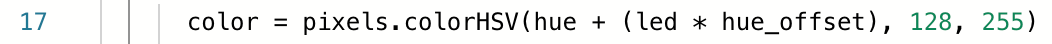 Now that we can control individual LEDs, you may be curious about controlling other parameters. For example, do we have to always set the saturation and value/brightness to 255? Of course not! Let's play with them and create even cooler effects.